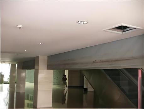 电动挡烟垂壁:与消防中心联动。平时帘片是卷在里面的,当有应急信号输入,卷帘自动打开。帘片下垂50公分。