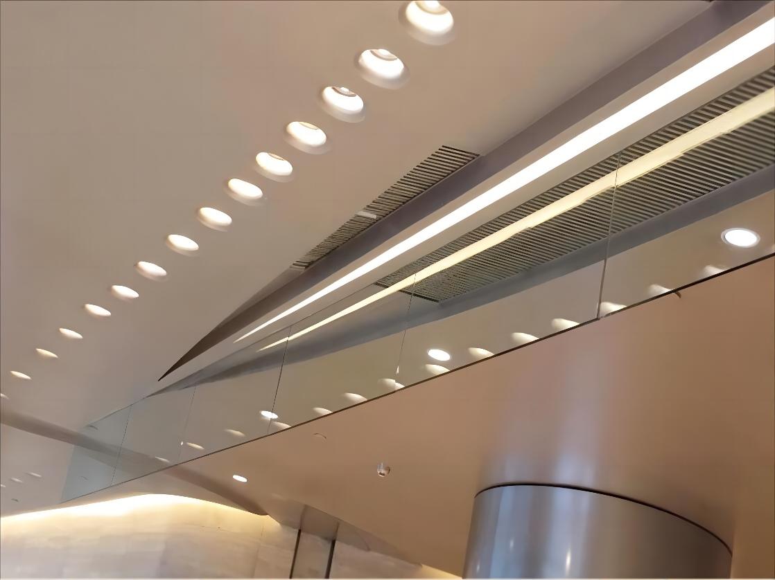 夹丝玻璃式:主要用在超市、大型商场以及无尘车间。下垂50公分。与透明玻璃不同的是,夹丝玻璃由两层玻璃中间夹一层扁形钢丝经特殊工艺压合而成,在遇到爆炸的情况下,可有效预防玻璃碎片下落而造成的人员伤亡。大大提高产品安全性。