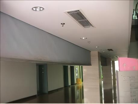 电动挡烟垂壁:与消防中心联动。平时帘片是卷在里面的,当有应急信号输入,卷帘自动打开。帘片下垂50公分。